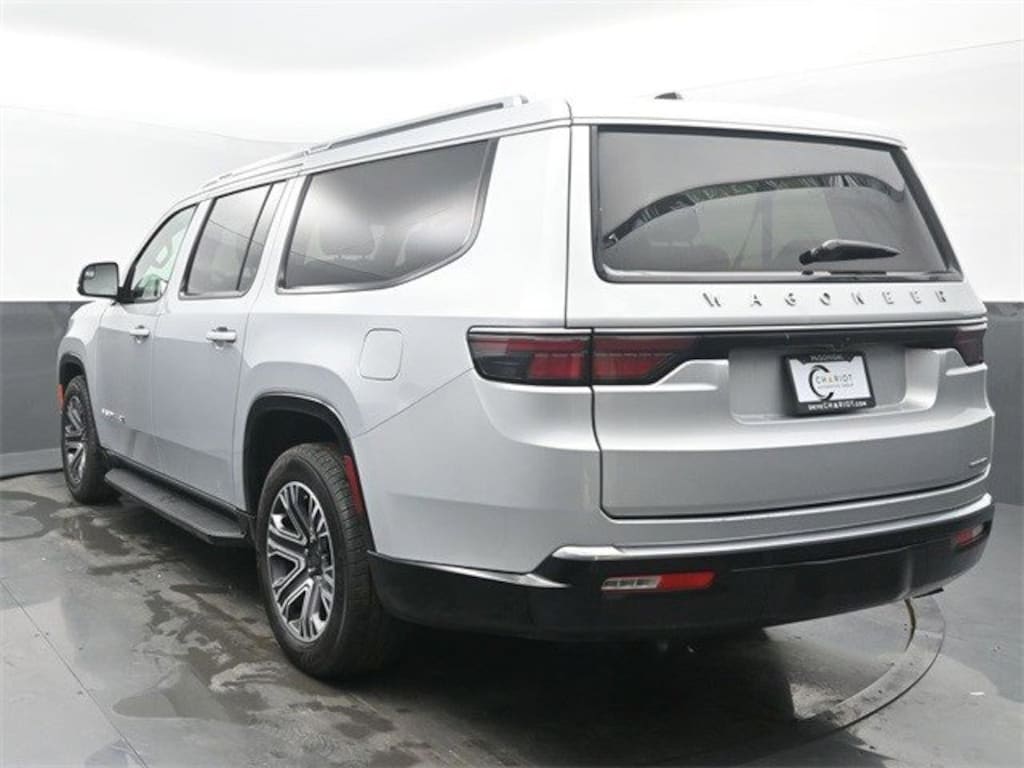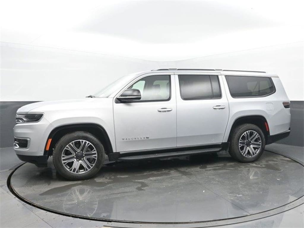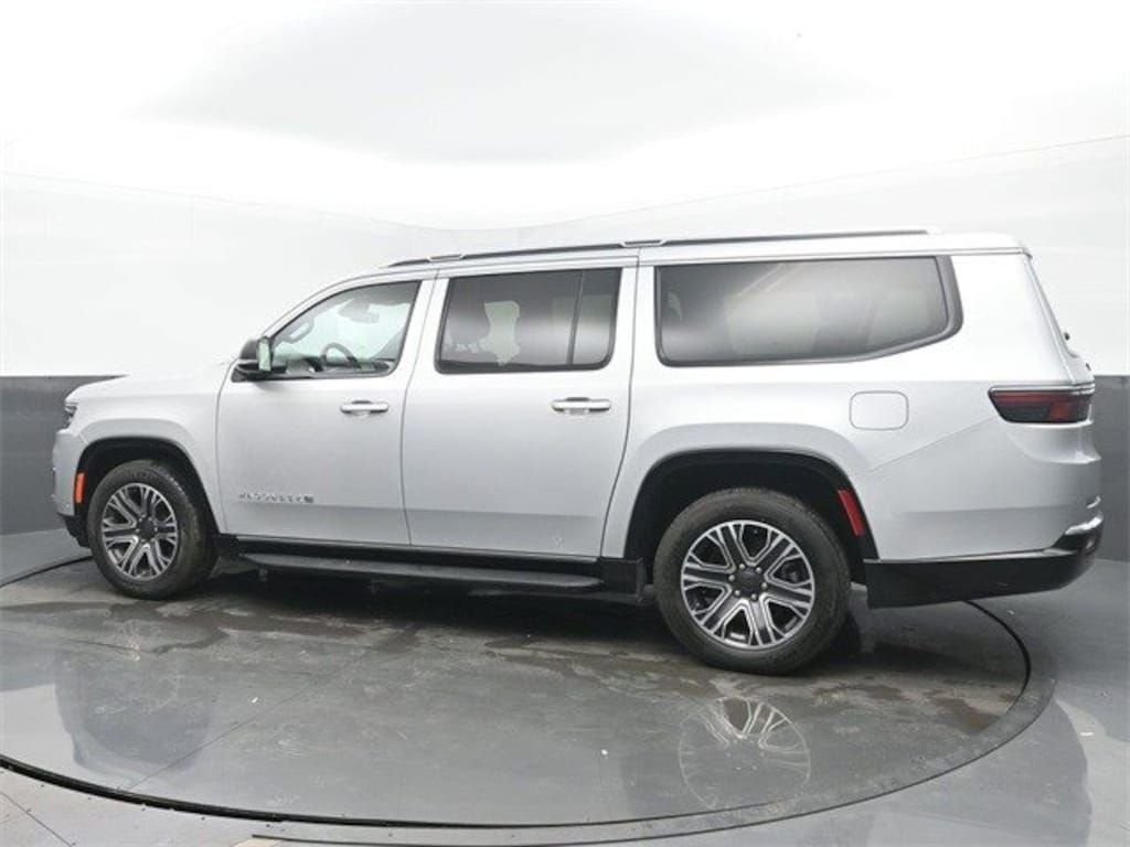 Flexible Seating Group (40/20/40 2nd Row Bench Power Tip/Slide, 8-Passenger Seating, and Full Length Floor Console), Quick Order Package 25J, 10 Speakers, 3.55 Rear Axle Ratio, 3rd row seats: bench, 4-Wheel Disc Brakes, ABS brakes, Adjustable pedals, Air Conditioning, Alloy wheels, AM/FM radio: SiriusXM with 360L, Anti-whiplash front head restraints, Apple CarPlay/Android Auto, Audio memory, Auto-dimming door mirrors, Auto-dimming Rear-View mirror, Auto-leveling suspension, Automatic temperature control, Brake assist, Bumpers: body-color, Compass, Delay-off headlights, Driver door bin, Driver vanity mirror, Driver's Seat Mounted Armrest, Dual front impact airbags, Dual front side impact airbags, Electronic Stability Control, Emergency communication system: Wagoneer Connect, Exterior Parking Camera Rear, Four wheel independent suspension, Front anti-roll bar, Front Bucket Seats, Front Center Armrest w/Storage, Front dual zone A/C, Front fog lights, Front reading lights, Fully automatic headlights, Garage door transmitter, Genuine wood console insert, Genuine wood dashboard insert, Genuine wood door panel insert, Heated door mirrors, Heated front seats, Heated steering wheel, Illuminated entry, Knee airbag, Leather Trimmed Bucket Seats, Low tire pressure warning, Memory seat, Navigation System, Normal Duty Suspension, Occupant sensing airbag, Outside temperature display, Overhead airbag, Overhead console, Panic alarm, Passenger door bin, Passenger seat mounted armrest, Passenger vanity mirror, Pedal memory, Power adjustable front head restraints, Power door mirrors, Power driver seat, Power Liftgate, Power passenger seat, Power steering, Power windows, Radio data system, Radio: Uconnect 5 Nav w/10.1" Display, Rain sensing wipers, Rear air conditioning, Rear anti-roll bar, Rear reading lights, Rear seat center armrest, Rear window defroster, Rear window wiper, Reclining 3rd row seat, Remote keyless entry, Security system, Speed control, Speed-sensing steering, Speed-Sensitive Wipers, Split folding rear seat, Steering wheel memory, Steering wheel mounted audio controls, Tachometer, Telescoping steering wheel, Tilt steering wheel, Traction control, Trip computer, Turn signal indicator mirrors, Variably intermittent wipers, Ventilated front seats, Voltmeter, and Wheels: 20" x 9.0" Premium 2 Aluminum Vehicle Doc Fee $249.